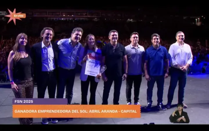Sin demoras, llegó el momento más esperado de la noche: la revelación del nombre de la Emprendedora del Sol 2025. La elegida fue Abril Aranda, representante del Departamento Capital, creadora de “Tuki“, una aplicación de descuentos diseñada para impulsar el consumo local.