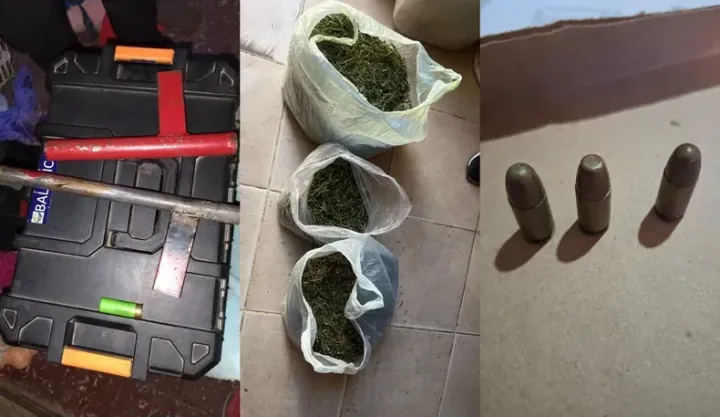 Los allanamientos se realizaron en varias residencias ubicadas en la calle Gobernador Izasa, abarcando los barrios Pateta, Los Toneles y Arenales. Durante las inspecciones, los agentes encontraron 1,305 kilos de marihuana, así como un arma de fuego de fabricación casera conocida como “tumbera”, junto con un cartucho calibre 12 UAB y varios cartuchos de 9 milímetros.