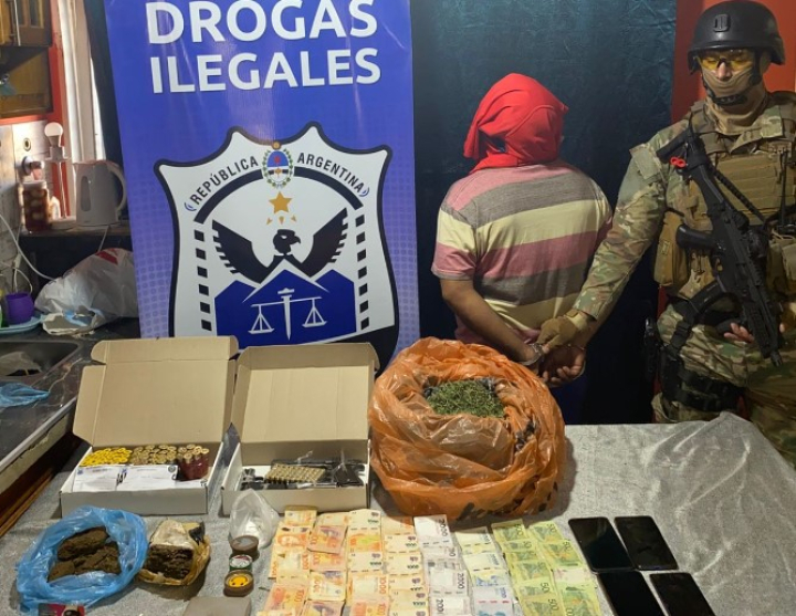 Durante la medida judicial, los uniformados hallaron dos armas de fuego, varios proyectiles de distintos calibres y sustancias ilegales, entre ellas marihuana y cocaína, precisaron desde Relaciones Policiales.