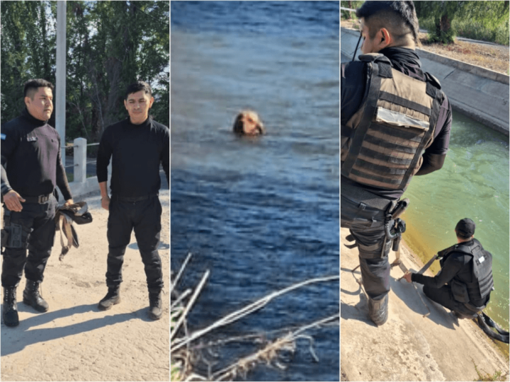 Al llegar al canal ubicado sobre calle Florida, los efectivos de la Unidad Operativa Dos Acequias descubrieron que el animal había sido atado con una línga y una soga antes de ser lanzado al agua.