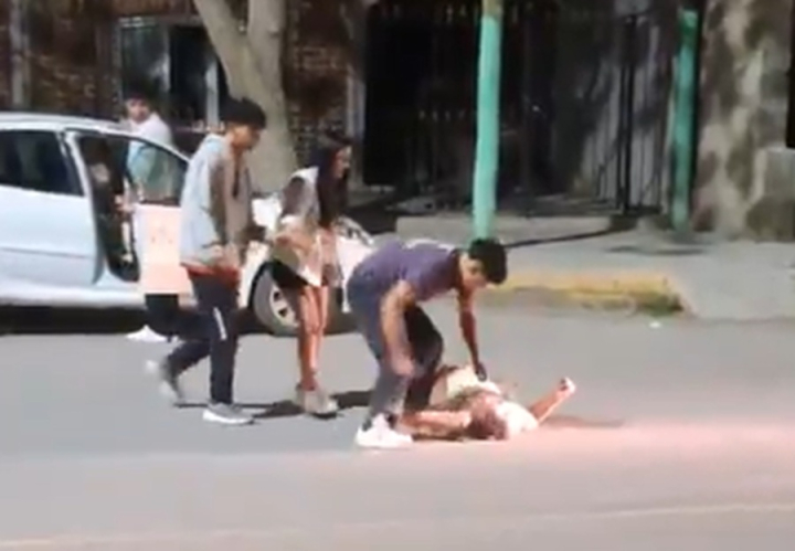 En el video se observa cómo ambos se trenzan en una pelea cuerpo a cuerpo mientras varias personas miran sin intervenir. Sin embargo, es el joven quien lanza los golpes más violentos, hasta dejar al hombre en el suelo.