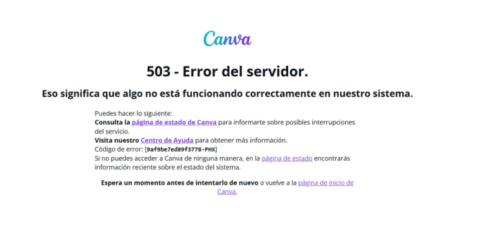 Caída global de Canva: el editor online presenta fallas y deja a miles sin accesoCaída global de Canva: el editor online presenta fallas y deja a miles sin acceso