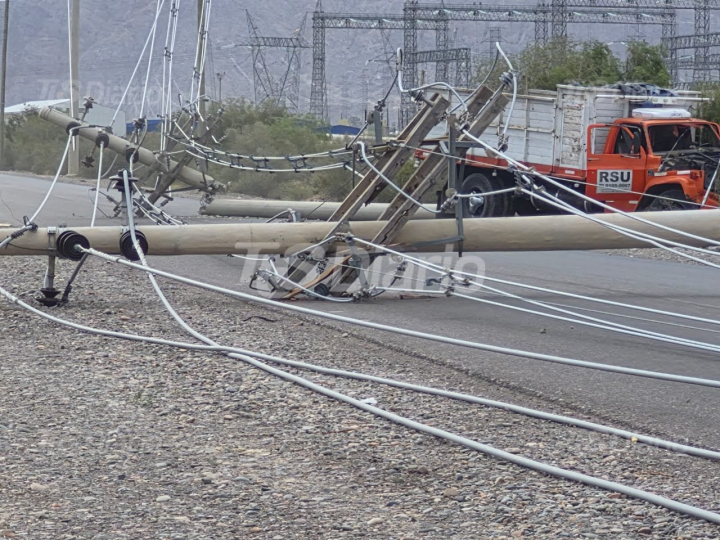 En horas de la tarde de este lunes, un brutal siniestro tuvo lugar en el departamento de Rivadavia, cerca del límite de Pocito, precisamente, sobre calle 5, antes del predio de Anchipurac. Como consecuencia, gran parte de Pocito quedó sin servico de electricidad, debido a que tres postes de alta tensión quedaron destrozados.