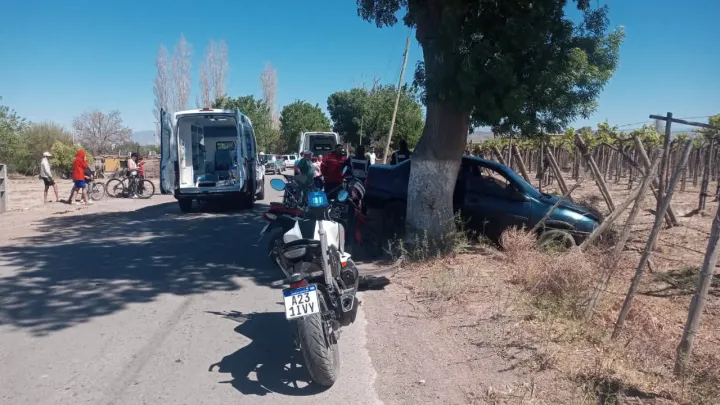 Un accidente de tránsito alteró la tranquilidad del mediodía de este sábado en Albardón. El hecho ocurrió en la zona del Rincón, sobre calle Rawson, cuando un automóvil Chevrolet Corsa impactó contra una motocicleta de 150 cc en la que viajaba una pareja.