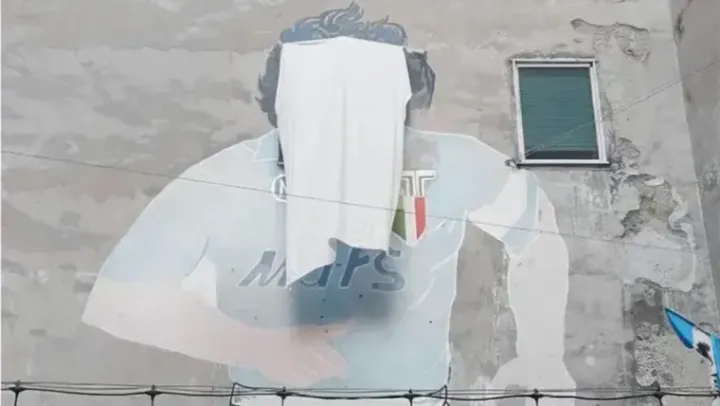 Cubrieron el rostro de Maradona en un icónico mural de Nápoles: cuál es el motivo