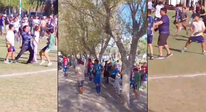 Durante un partido del torneo “San Juan Deportivo”, una discusión por una decisión del árbitro derivó en una violenta pelea colectiva que involucró a futbolistas, simpatizantes y espectadores, muchos de ellos niños y adultos con sus familias.