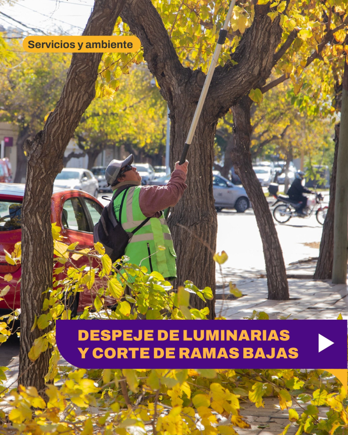 La Municipalidad de la Ciudad de San Juan, a través de la Secretaría de Servicios y Ambiente, informa el cronograma de despeje de luminarias y corte de ramas bajas, con el objetivo de mantener en condiciones el arbolado público y mejorar la iluminación en calles y espacios barriales.