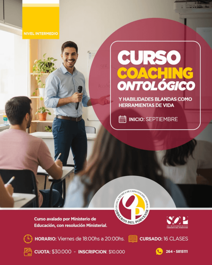 El curso “Coaching Ontológico y Habilidades Blandas con Herramientas de Vida” comenzará en septiembre, ofreciendo una oportunidad única para desarrollar habilidades clave en el ámbito personal y profesional. Las clases se llevarán a cabo los viernes de 18 a 20 horas, con un costo de inscripción de $10.000 y cuota de $30.000.