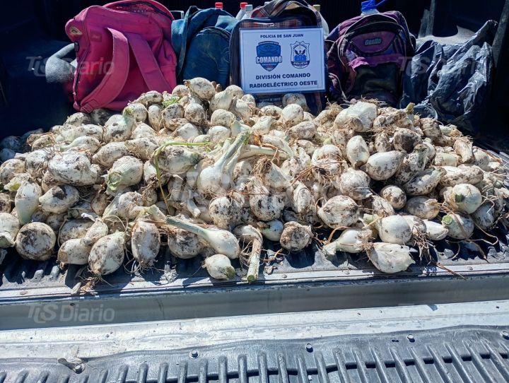 Dos jóvenes de 21 y 22 años fueron detenidos en la tarde del viernes por efectivos del Comando Radioeléctrico Oeste después de robar varios kilos de cebollas de una finca dedicada al cultivo de esa hortaliza en Rivadavia.