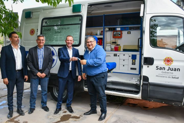 En la sede de la Municipalidad de Ullum, el ministro de Salud, Amílcar Dobladez y el intendente, Julián Domínguez, encabezaron el acto de entrega en comodato de una ambulancia IVECO Daily, destinada al traslado de pacientes de mediana complejidad.