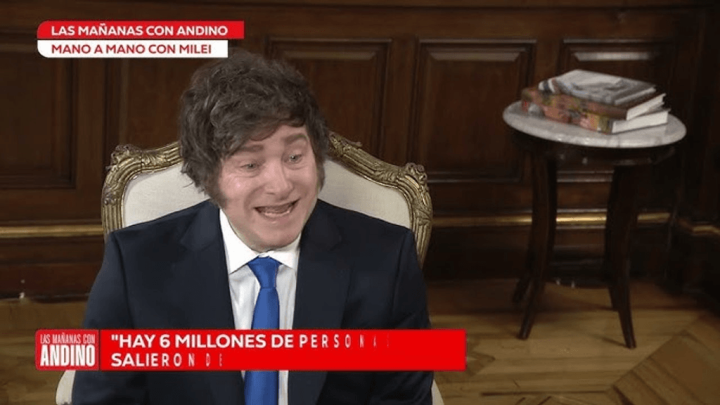 El periodista Guillermo Andino trajo a colación una frase que resuena en lo cotidiano: “Hay gente que dice: “todo bien, pero yo no veo la recuperación económica en mi bolsillo”… Mi mes termina el día 20”. A esto, Milei respondió: “Muchas veces esas son cosas con golpes de efecto. Es más, mucho de eso fue también generado desde una encuesta trucha. Porque el punto es que hoy hay 12 millones de pobres menos”.