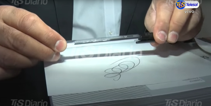 “Una lapicera común y corriente, como la que pueden encontrar en cualquier librería de barrio. Una lapicera que, de borrar esto con una goma, implicaría hacerle un hueco a la hoja“, comentó el funcionario.