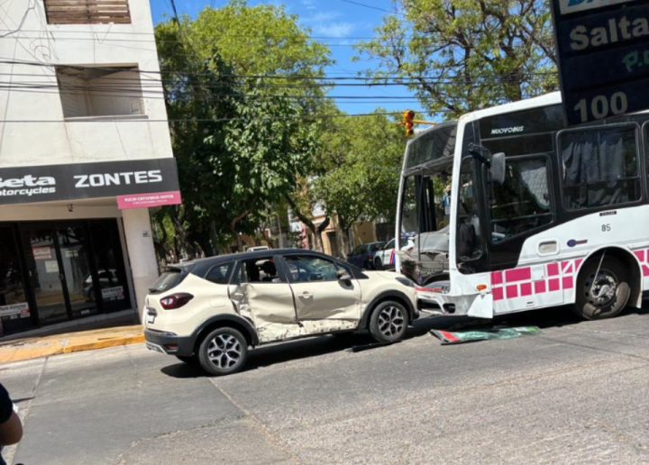 En horas de la siesta, un fuerte choque tuvo lugar en el concurrido cruce de calles Laprida y Salta, en la Capital de San Juan. Un auto y un colectivo de la RedTulum se vieron involucrados en este incidente, que dejó resultados serios.