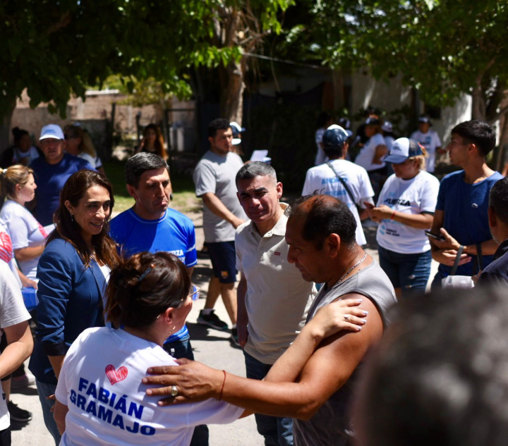 Los candidatos a diputados nacionales por Fuerza San Juan, Fabián Gramajo, Cristian Andino y Romina Rosas recorrieron juntos distintos barrios de Chimbas, donde dialogaron con los chimberos y reafirmaron su compromiso “con una política cercana, con corazón y con firmeza”. Los tres dirigentes estuvieron acompañados de la intendenta departamental, Daniela Rodríguez quien estuvo junto a ellos durante la jornada, charlando con vecinos.