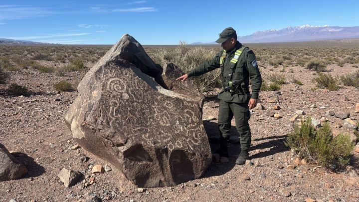 Efectivos de Gendarmería del Escuadrón XXVI Barreal se desplazaron hasta la Ruta Provincial 406 para verificar denuncias sobre posible vandalismo en sitios patrimoniales, donde descubrieron: