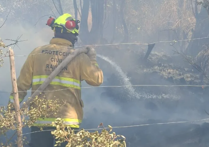Un voraz incendio de pasturas secas provocó que grandes llamas abarquen una gran zona comprendida entre las calles 8 y Manuel Belgrano, en la zona del Médano de Oro. El fuego amenaza con llegar hasta las viviendas vecinas, por lo que los lugareños tuvieron que abandonar sus casas.