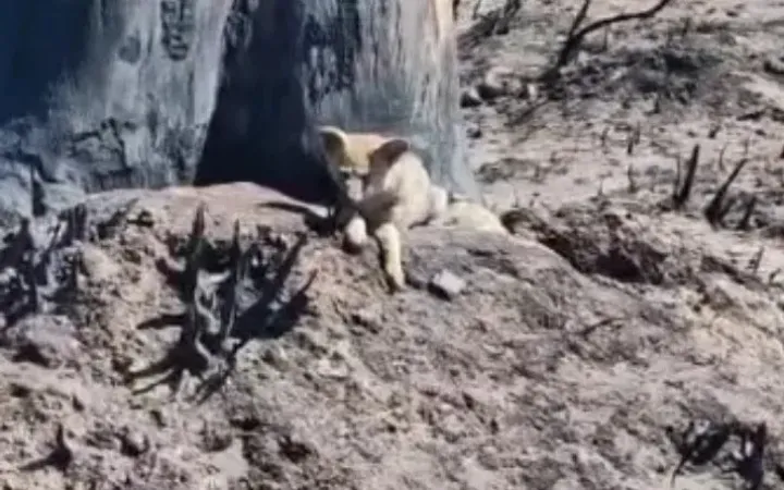 El zorrito fue hallado temblando y desorientado, cerca de un árbol carbonizado, en medio del humo espeso. Castro capturó el momento en un video que rápidamente se volvió viral en sus redes sociales, mostrando al pequeño animal en un estado de shock, con lesiones visibles y ojos afectados por el fuego.