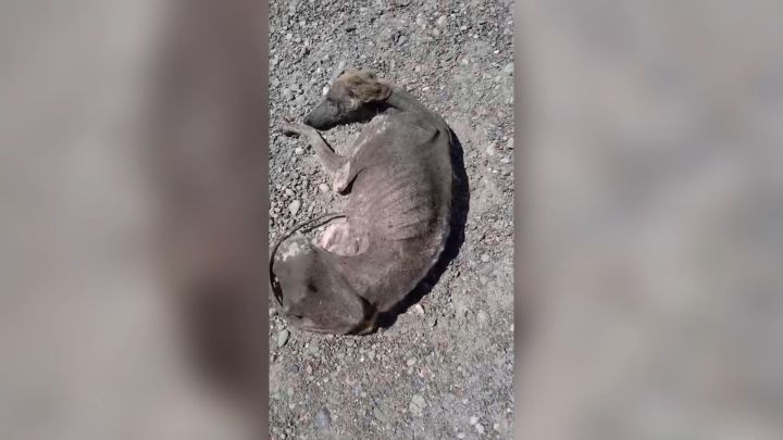 El proteccionista explicó que Ragna es una mestiza con características de galgo. “Es un cadáver andando, literalmente, porque es piel y hueso. Y arriba de esos huesos está plagada de garrapatas. Es algo inhumano y es increíble la fuerza de voluntad que tiene el animalito para continuar vivo, porque es tremendo el estado en que se encuentra”, agregó.