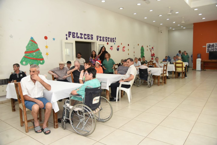 En el hogar residen 158 adultos mayores, hombres y mujeres con historias marcadas por la vida, por las ausencias y también por la resiliencia. La cena de Nochebuena es temprana y se comparte junto al personal que cumple guardia, trabajadores que eligen acompañar cuando la mayoría vuelve a casa.