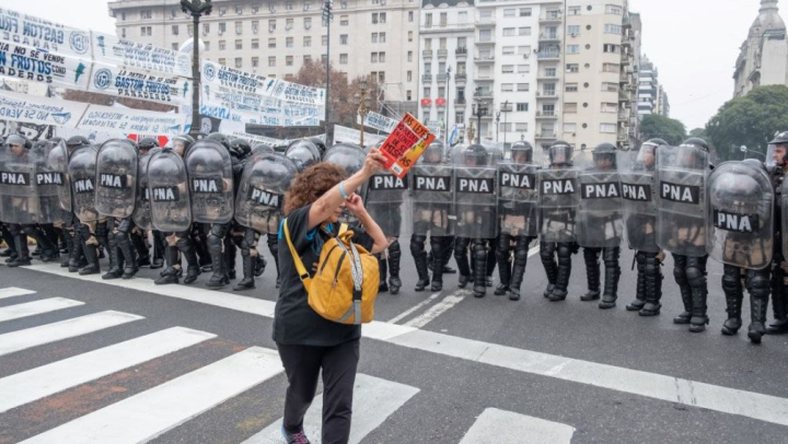 Lo que comenzó como una concentración pacífica derivó en forcejeos con efectivos de la Policía Federal, que habían desplegado un amplio operativo en la zona céntrica de la Ciudad de Buenos Aires.