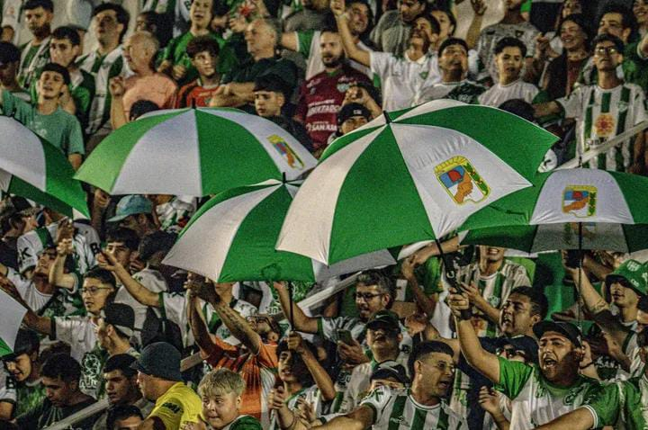El verde volvió, y volvió con todo su folclore. Las calles cercanas al estadio se llenaron de hinchas con camisetas, banderas, bombos y paraguas verde y blanco. Sin embargo, entre ese colorido popular hubo un detalle que llamó la atención: muchos de esos paraguas no llevaban el escudo del club, sino la insignia del Partido Justicialista.
