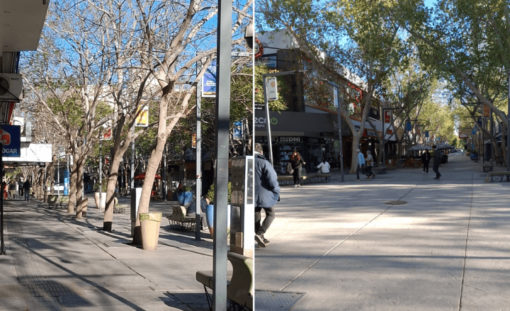 La Peatonal sanjuanina, normalmente bulliciosa y llena de vida, se presenta hoy con un movimiento notablemente reducido. La falta de clientes y transeúntes ofrece una imagen poco habitual en esta zona central, donde el comercio suele ser el protagonista diario.