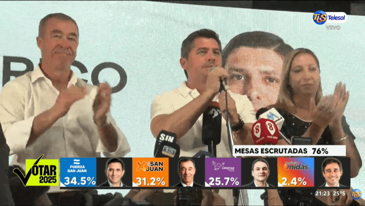 Con casi el 80% de las mesas escrutadas en San Juan, los resultados preliminares indican que el frente peronista Fuerza San Juan, liderado por Cristian Andino, se posicionó en primer lugar. El gobernador Marcelo Orrego reconoció haber finalizado en segundo lugar, pero celebró que su compañero Fabián Martín ocupará una banca en el Congreso de la Nación.