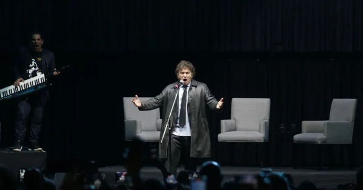 El presidente Javier Milei relanzó su campaña electoral en un evento masivo realizado en el Movistar Arena, combinando la presentación de su nuevo libro, La Construcción del Milagro, con un mini concierto protagonizado por él y su “Banda Presidencial”.