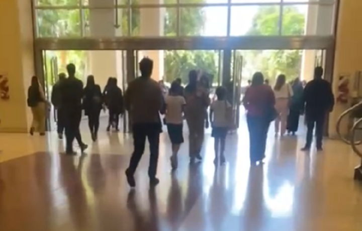 Por protocolo, intervinieron la Policía de San Juan, junto a Bomberos y la División de Explosivos, quienes procedieron a la evacuación inmediata del edificio público más importante de la provincia.