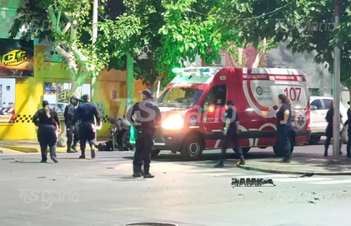 Según relataron testigos, dos motos policiales circulaban con sirenas y luces encendidas por calle Mendoza hacia el sur y atravesaron el cruce con el semáforo en rojo debido a una situación de emergencia. En ese momento, una camioneta que transitaba por avenida Córdoba de este a oeste, con el semáforo en verde, no logró frenar a tiempo y terminó impactando contra una de las motocicletas oficiales.