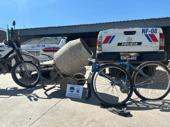 En una reciente operación, la Policía de la División Comando Radioeléctrico Oeste logró recuperar una hormigonera y una bicicleta que habían sido robadas en el Lote Hogar 25/41, en el departamento de Rivadavia.