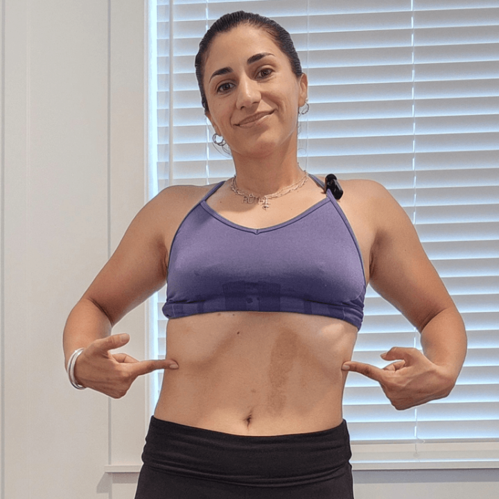 Con su esposo Matías conocieron la gimnasia hipopresiva, un conjunto de ejercicios posturales y respiratorios que buscan disminuir la presión intraabdominal. Combinan la respiración en apnea (sin aire) con la activación del transverso abdominal para fortalecer el core y el suelo pélvico, ayudando a mejorar la postura, reducir la cintura y prevenir o mejorar problemas como la incontinencia urinaria.