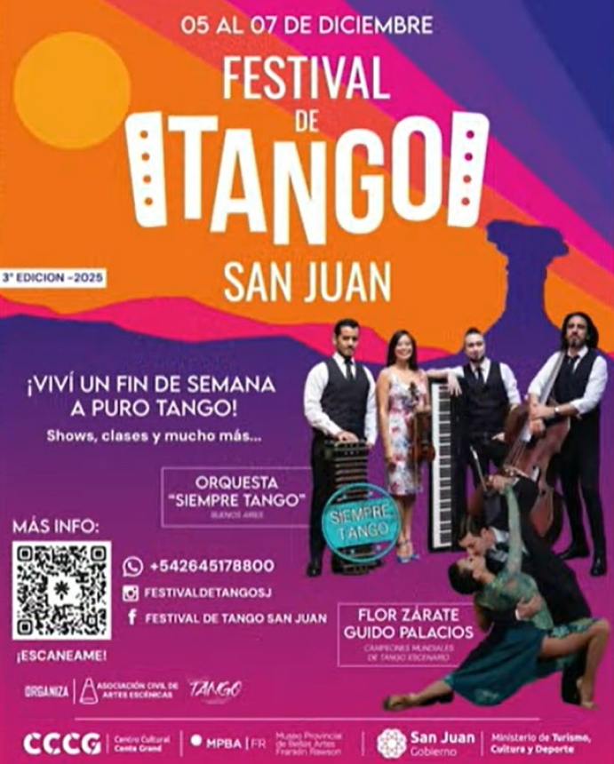 San Juan se alista para convertirse este fin de semana en la capital del 2×4. Del 5 al 7 de diciembre, la Asociación Civil de Artes Escénicas llevará adelante una nueva edición del Festival de Tango San Juan, un evento que reunirá a bailarines, músicos, artistas y aficionados del género que buscan vivir de cerca esta expresión cultural.