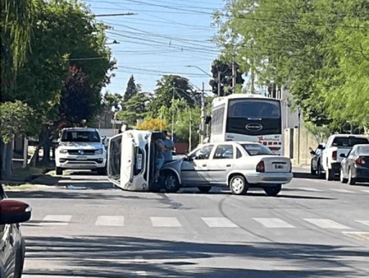 Un violento siniestro vial tuvo lugar, en horas de la tarde de este lunes, en un cruce de Capital. Lo protagonizaron dos vehículos, de los cuales uno terminó volcado en medio de la calzada.