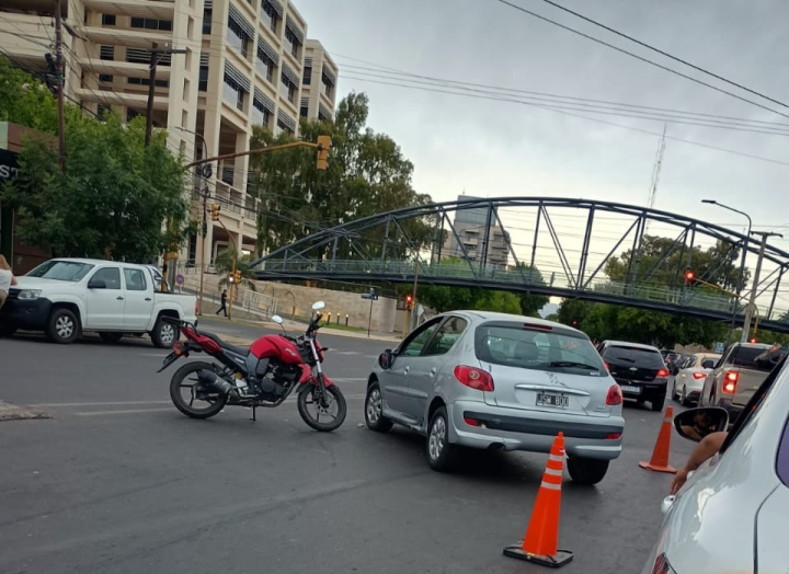 Un auto chocó contra una motocicleta en un transitado cruce de Capital