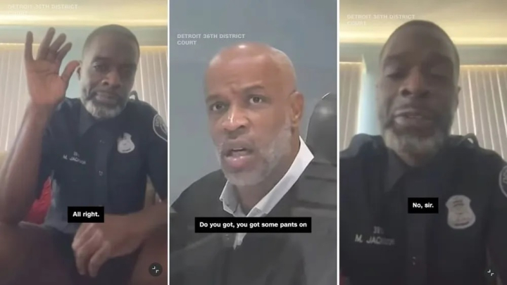 Durante una audiencia judicial por videollamada, el agente apareció ante el juez sin pantalones, solo con su camisa de uniforme y calzoncillos negros.