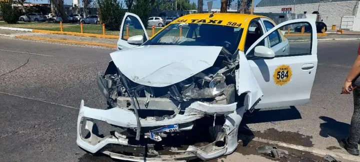 Este lunes, un incidente vial tuvo lugar cuando un remis chocó contra una camioneta en la intersección de calles Hipólito Yrigoyen y Colón, frente al club Alianza, en Santa Lucía.