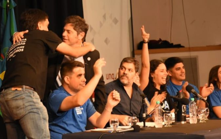 La ceremonia se realizó en el salón de actos de la Universidad Nacional de Quilmes y marcó la asunción de Hugo Meneses como presidente de la JUP bonaerense. El encuentro contó con un fuerte respaldo político: estuvo presente el gobernador Axel Kicillof, acompañado por funcionarios de su administración y referentes legislativos. Entre ellos, la secretaria de Juventudes Ayelén López; la jefa de Asesores, Cristina Álvarez Rodríguez; el jefe de Ministros, Carlos Bianco; además de los diputados Daniel Gollan y Kelly Olmos, recientemente electa legisladora.