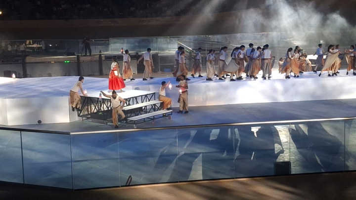 Las Raices musicales con tonadas clásicas mas una puesta en escena de actores y bailarines que el amplio campo de juego del Velódromo fueron una combinación perfecta para la puesta en escena de un show impecable.