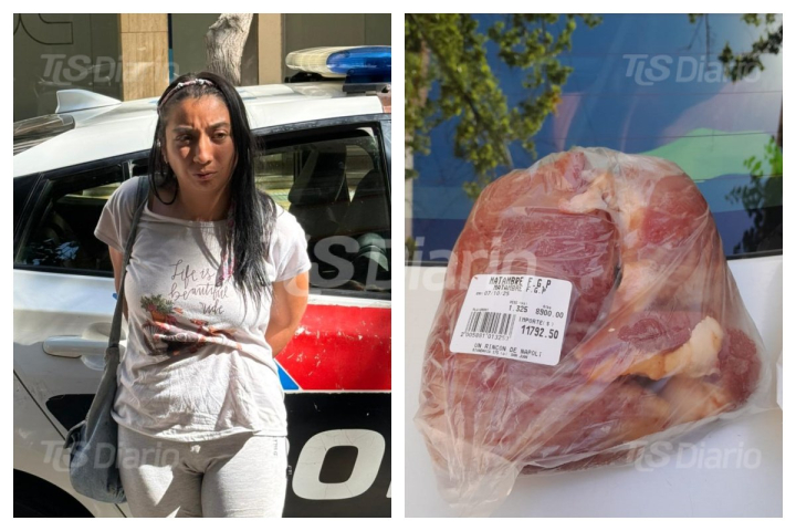 Siguiendo el relato policial, la mujer ingresó a ese negocio ubicado en calle Rivadavia 181 Oeste y guardó en su bolso el corte de carne.
