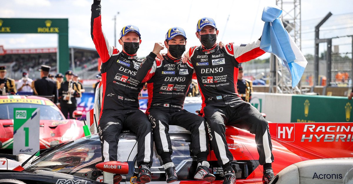 Mike Conway, Kamui Kobayashi y Pechito López con la bandera argentina (Prensa Toyota Gazoo Racing) A pocas días de su histórico triunfo en las 24 Horas de Le Mans y más relajado en la casa de sus padres en Río...