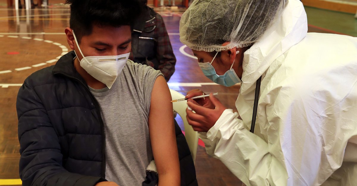 Un joven boliviano se toma una foto durante el momento en el que recibe una dosis de la vacuna contra la covid-19 en La Paz (Bolivia). EFE/ Martin Alipaz/Archivo