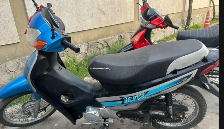• Motomel Blitz 110cc azul con detalles en gris, vinculada a un hecho delictivo.