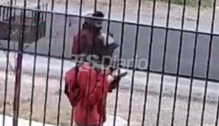 A las 16.06 la cámara capta al sospechoso llevando sobre sus hombros a su hijito. Ambos caminan por la vereda y pasan. Hasta allí, nada anormal.