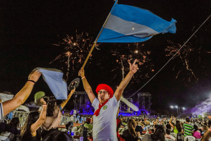 La imagen tomada desde el dron muestra la imponente postal del anfiteatro Buenaventura Luna durante la última noche de la Fiesta de la Tradición, que combinó calidad artística, un clima festivo entre la gente y una impresionante convocatoria.
