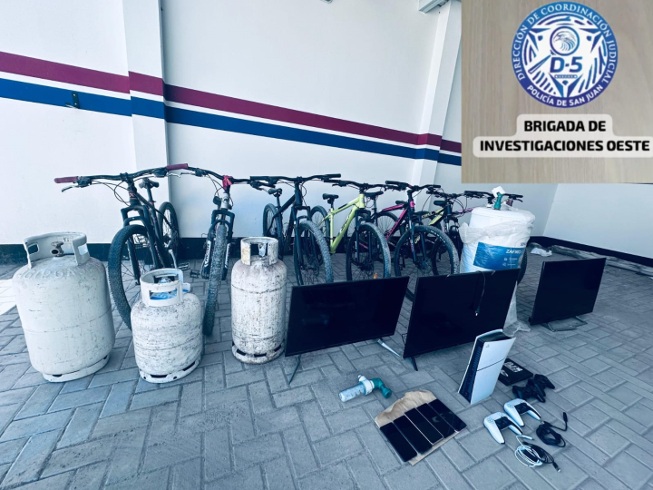 Los pesquisas lograron secuestrar una Play Station 5, marca SONY, con sus dos joystick inalámbricos y cables de alimentación. Además, se incautaron otros elementos, entre ellos: dos SMART TV, de 32 y 40 pulgadas, marca NOBLEX y TCL; 5 bicicletas tipo todoterreno, rodados 26 y 29, de diferentes marcas; 3 garrafas de 10 y 15, de color blanco; una Play Station 2, marca SONY, con sus dos joystick; un termotanque marca SEÑORIAL, de 120 litros, sin usar; un filtro de agua marca PSA; y 5 teléfonos móviles de distintas marcas y modelos.