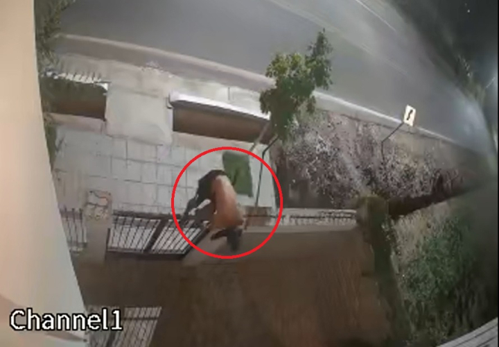 En cuestión de segundos, escaló las rejas perimetrales, se subió al techo de la vivienda y consiguió ingresar rompiendo el techo del baño.