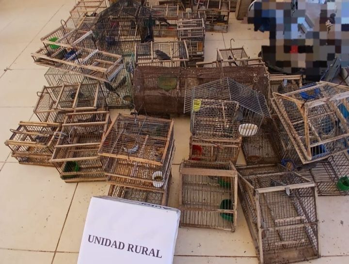 Durante el operativo, se incautaron 55 aves autóctonas protegidas por leyes nacionales y provinciales, entre ellas benteveos, diucas, gilgueros, loicas y cardenales copete rojo, entre otras especies.