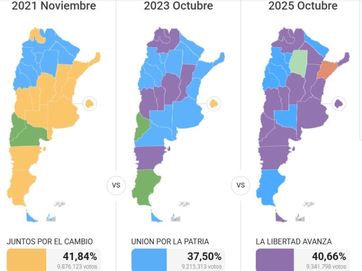 Entre los distritos que concentran el 60% del padrón electoral –Buenos Aires, CABA, Córdoba y Santa Fe–, LLA resultó ganadora en todos. Además, obtuvo triunfos en Chaco, Chubut, Entre Ríos, Jujuy, Mendoza, Misiones, Neuquén, Río Negro, Salta y San Luis.