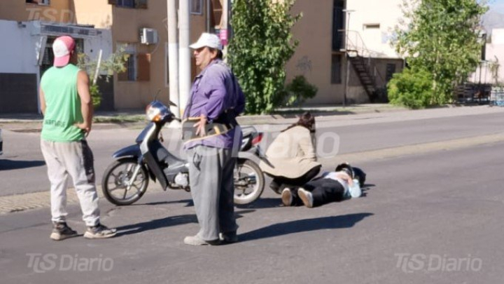 Un accidente de moto ocurrió en la mañana de este lunes en la arteria que desemboca en la entrada de un conocido supermercado situado en Rivadavia.